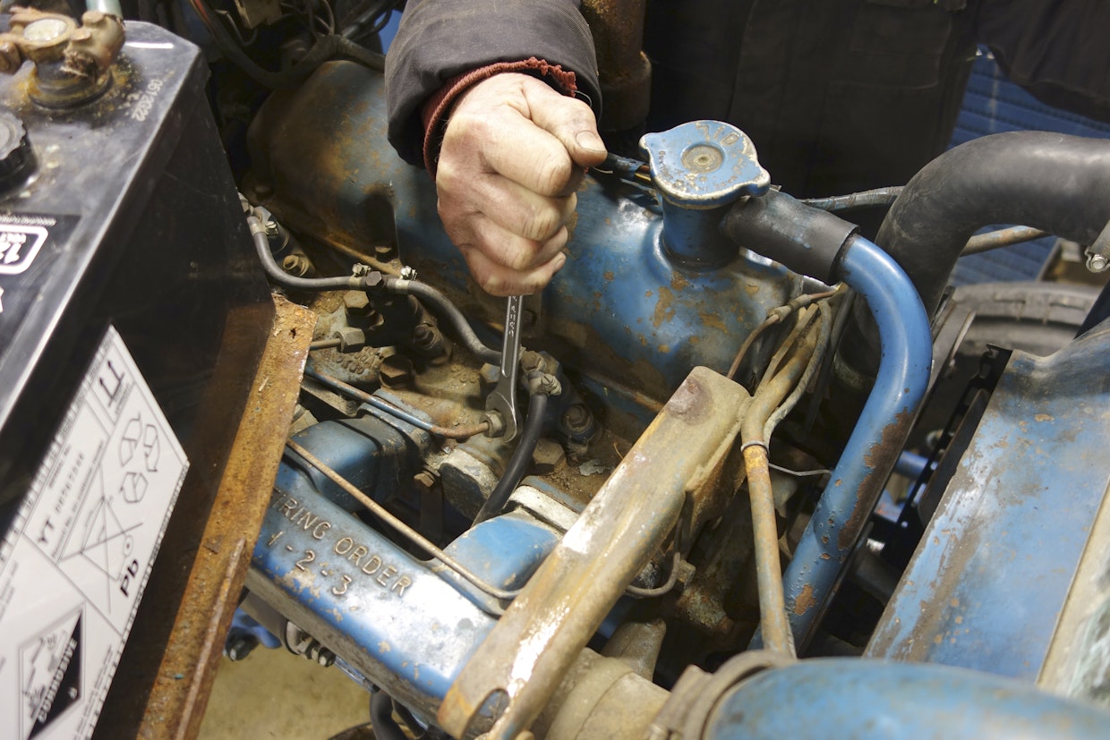 Kokemus on opettanut, että jakajapumpulliset Fordit vaativat kaikkien ruiskutusputkien löysäämisen, jotta järjestelmään jäänyt ilma poistuisi kokonaan ja moottori lähtisi käyntiin. Putkien ylempää mutteria kierretään noin kierroksen verran auki. Kuva: Jussi Laukkanen