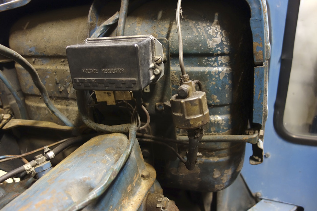 Kylmäkäynnistyksen helpottamiseksi sai Fordeihin lisävarusteena Thermostart-laitteen. Se tulee näkyville, kun akkuteline käännetään sivulle. Imusarjassa on sähkövastus, jonka luokse johtaa putki polttoainesäiliön edessä olevasta keräimestä. Kuumentuneelle vastukselle ruiskautetaan käynnistettäessä pieni määrä polttoainetta, joka on lähtöisin ruiskutussuuttimien ylivuotolinjasta. Kuva: Jussi Laukkanen