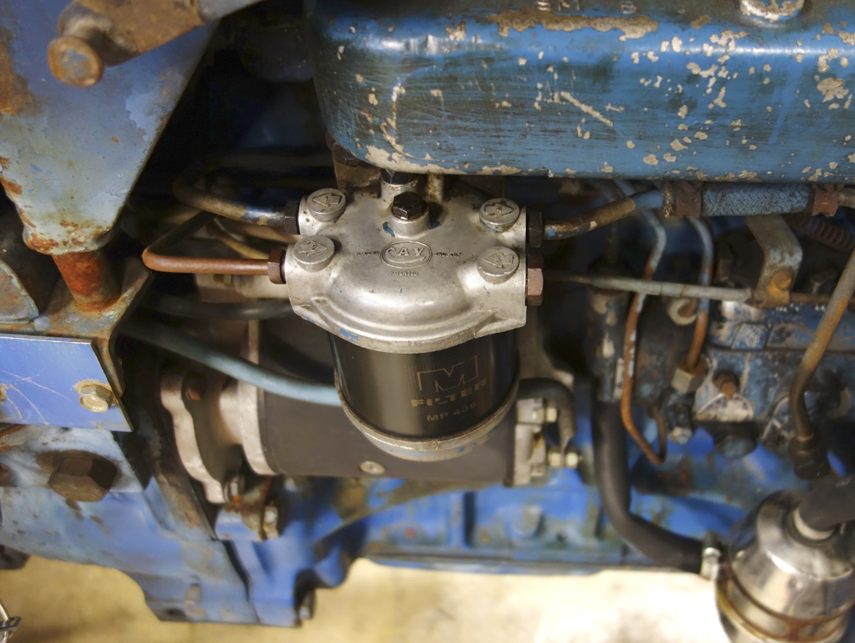 Tonnisarjassa sekä moottorin öljynsuodatin että polttoaineensuodatin vaihtuivat patruunatyyppisiksi. Useissa 1960-luvun lopun brittitraktoreissa on hinnaltaan edullinen C.A.V 296 -tyyppinen polttoaineensuodatin. Sen vaihtaminen on helppoa. Kuva: Jussi Laukkanen
