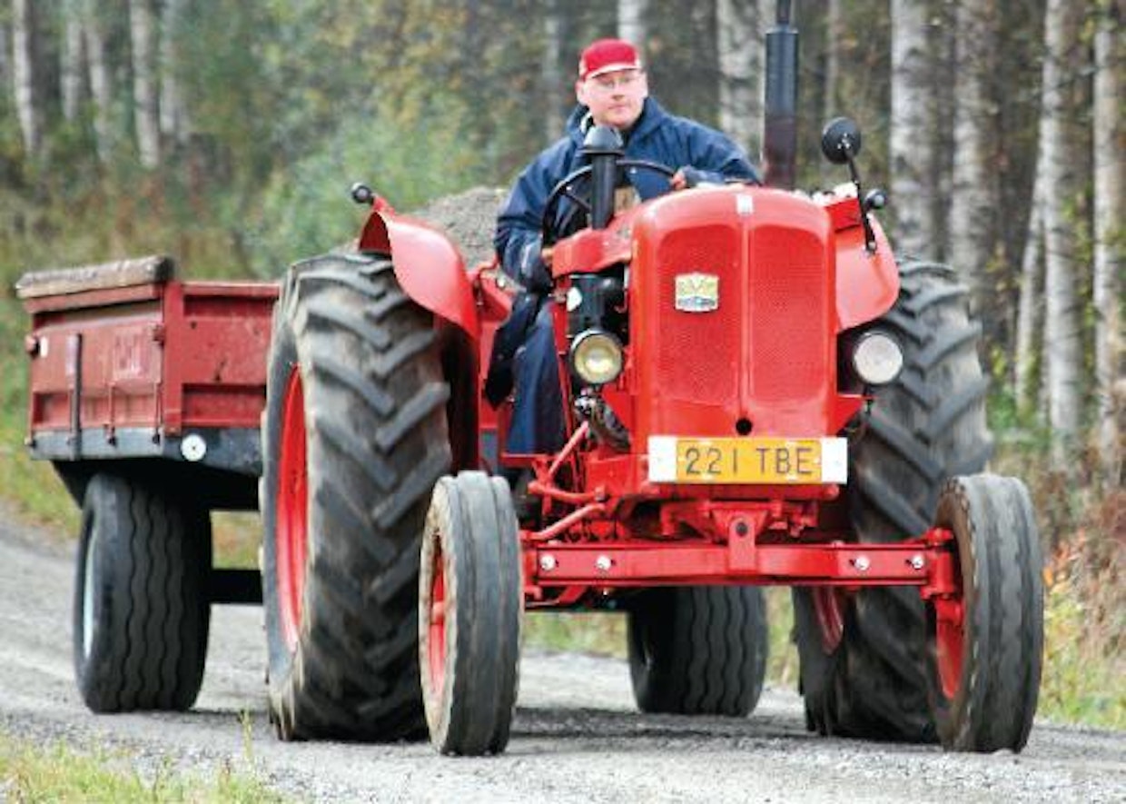 Super Majorin kytkinpolkimen vieressä ovat voimanottoakselin kytkentävipu ja startti. Mittaritaulun yhteydessä on käsikaasu ja äänimerkki. Vasemmanpuoleisesta mittarista löytyy öljynpaineen ja latauksen merkkivalot sekä lämpömittari, oikeanpuoleinen on tuntilaskijalla sekä yhdistetyllä kierrosluvun ja nopeuden mittarilla varustettu yleismittari. Ohjauspyörän alla olevassa paneelissa on yhdistetty virtalukko ja valokatkaisija, jonka yläpuolella on jälkiasennettu vilkkukatkaisija. Paneelin oikeassa reunassa ovat kertojavipu ja sammutin. Perusvaihteiston vaihdevalitsin on laatikon vasemmassa laidassa. Oikealla puolella ovat käsijarruvedin, yhteen lukittavat jarrupolkimet sekä jalkakaasu. Kuva: Kimmo KottaSuperin kyydissä istutaan melko korkealla verrattuna aiempiin malleihin, mikä johtuu jousitetusta istuimesta. Sinänsä tästä ei ole suurta haittaa, mutta koska kaikki hallintalaitteet ovat samoja kuin aikaisemmissa malleissa, joutuu korkealta penkiltä kurkottelemaan lähes jokaiseen hanikkaan.