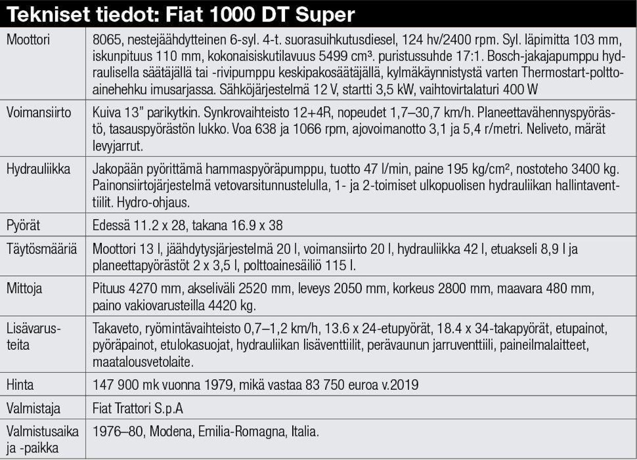 Muualla Euroopassa ilmoitettiin Fiatien tehot DIN-hevosvoimina, mutta Työvälineellä sitä pidettiin joutavana kursailuna, SAE-tehot olivat paljon komeampia, etenkin jos niihin pantiin pientä "hyväntraktorin" lisää. Niinpä Fiat 1000 oli meillä 112 hv:n tehoinen, myöhempi Super-malli peräti 124:n.